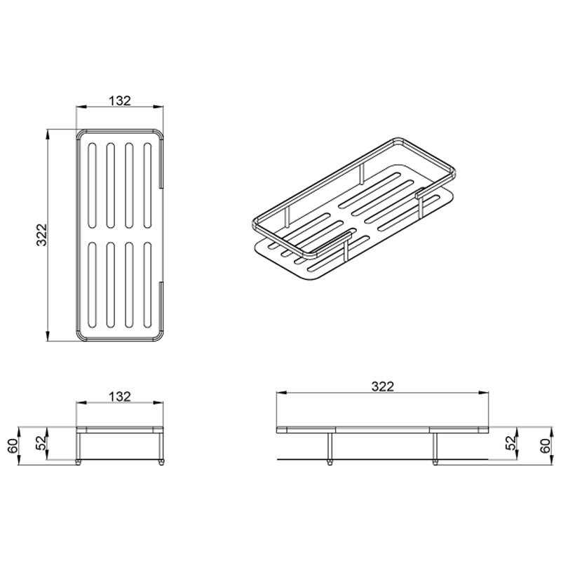 Полка прямоугольная одноэтажная, хром
