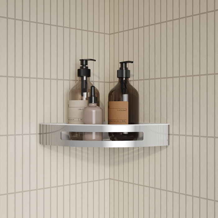 Полка угловая, материал изделия Нержавеющая сталь, цвет - Глянцевый хром. Крепеж в комплекте. Упаковка - Цветная картонная коробка.