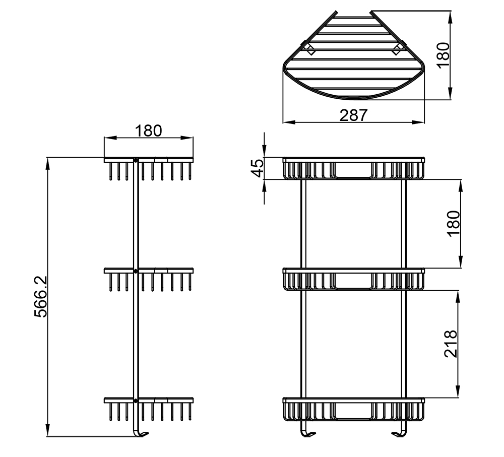 Полка угловая трехэтажная, матовый хром