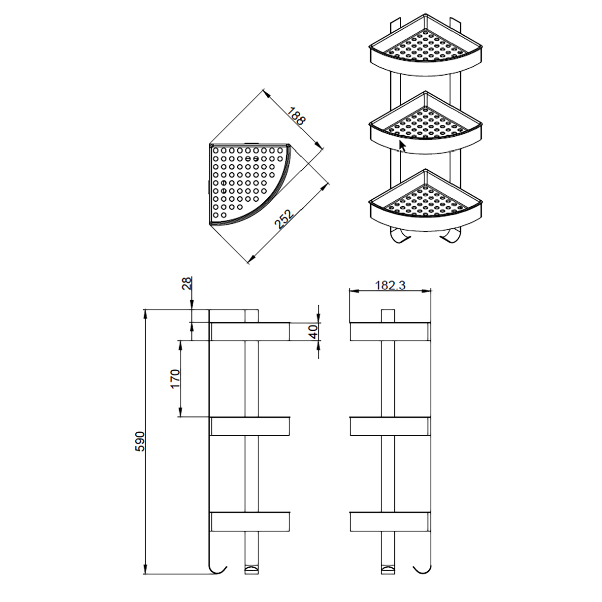 Полка угловая трехэтажная матовый хром Azario (AZ-833-3)