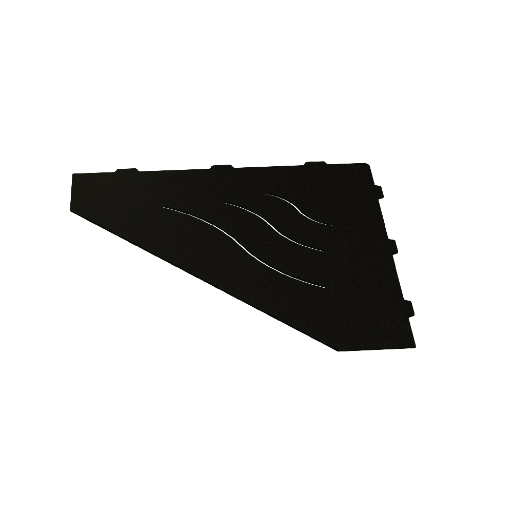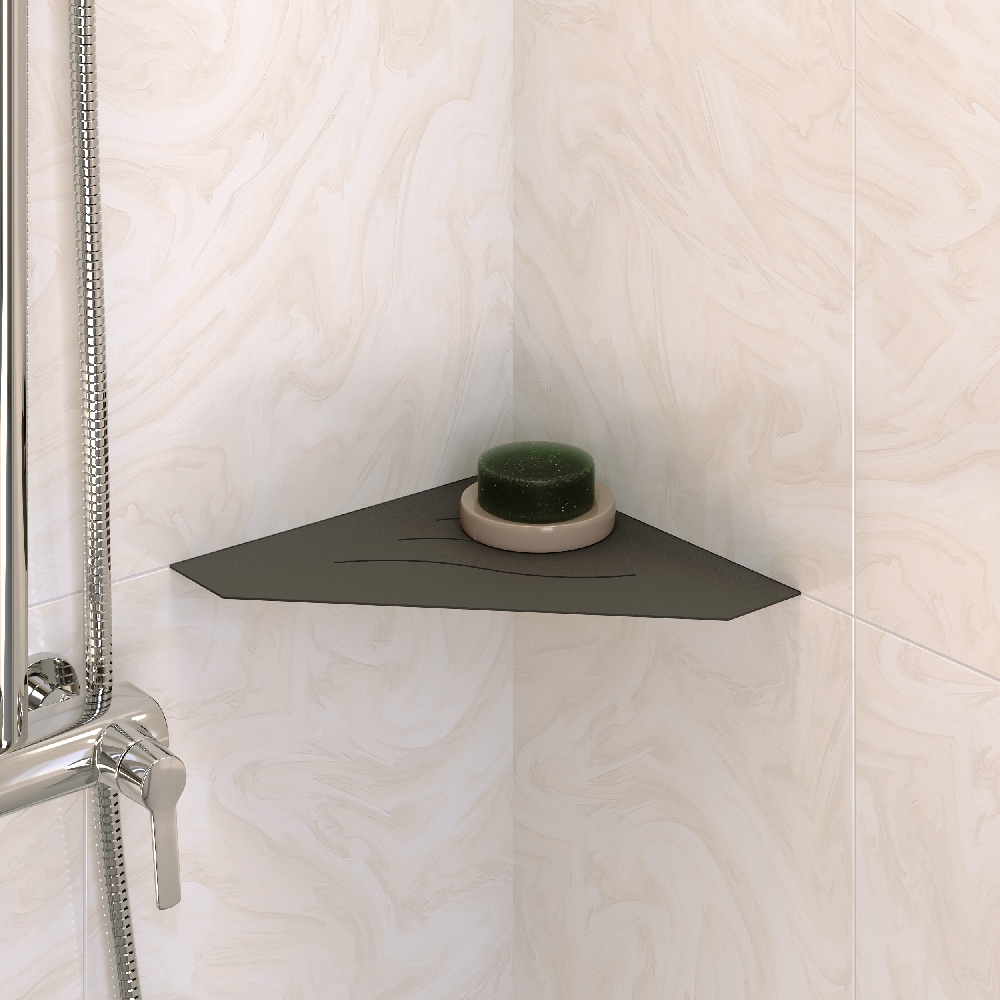Полки для душевой зоны, разработанные специально для монтажа после завершения ремонта, т. е. укладки плитки. Легко устанавливаются в любые угловые зоны в помещении, для этого прорезается шов между плитками, далее полочка вклеивается между плиткой на любой бытовой герметик.