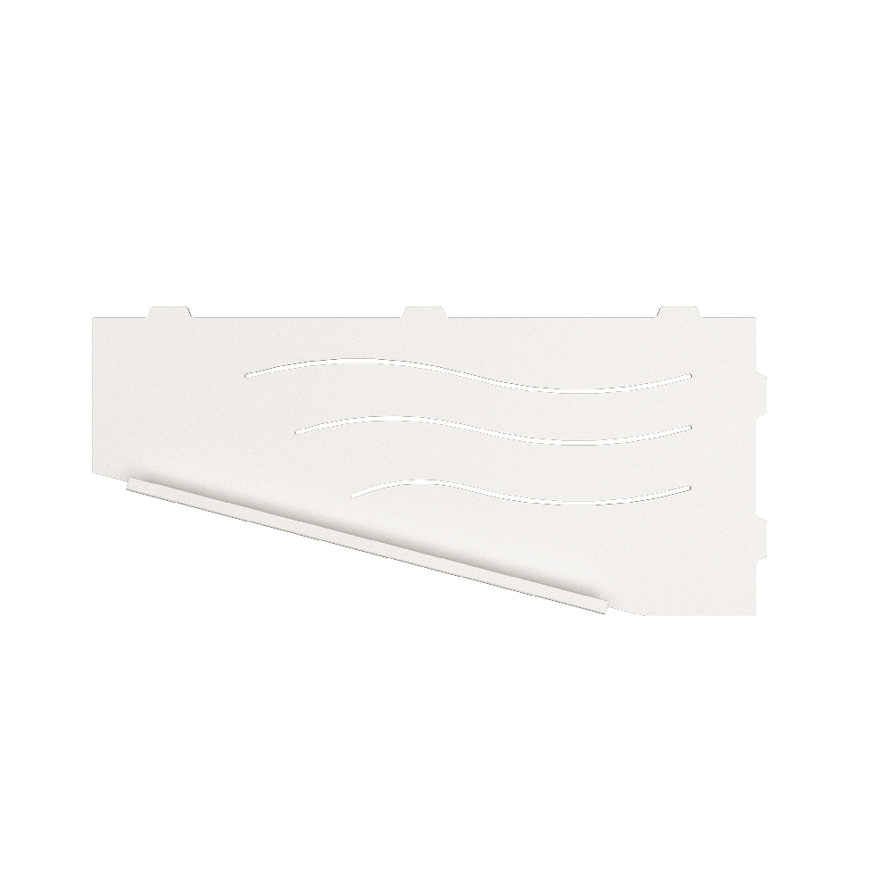 Полки для душевой зоны, разработанные специально для монтажа после завершения ремонта, т. е. укладки плитки. Легко устанавливаются в любые угловые зоны в помещении, для этого прорезается шов между плитками, далее полочка вклеивается между плиткой на любой бытовой герметик.