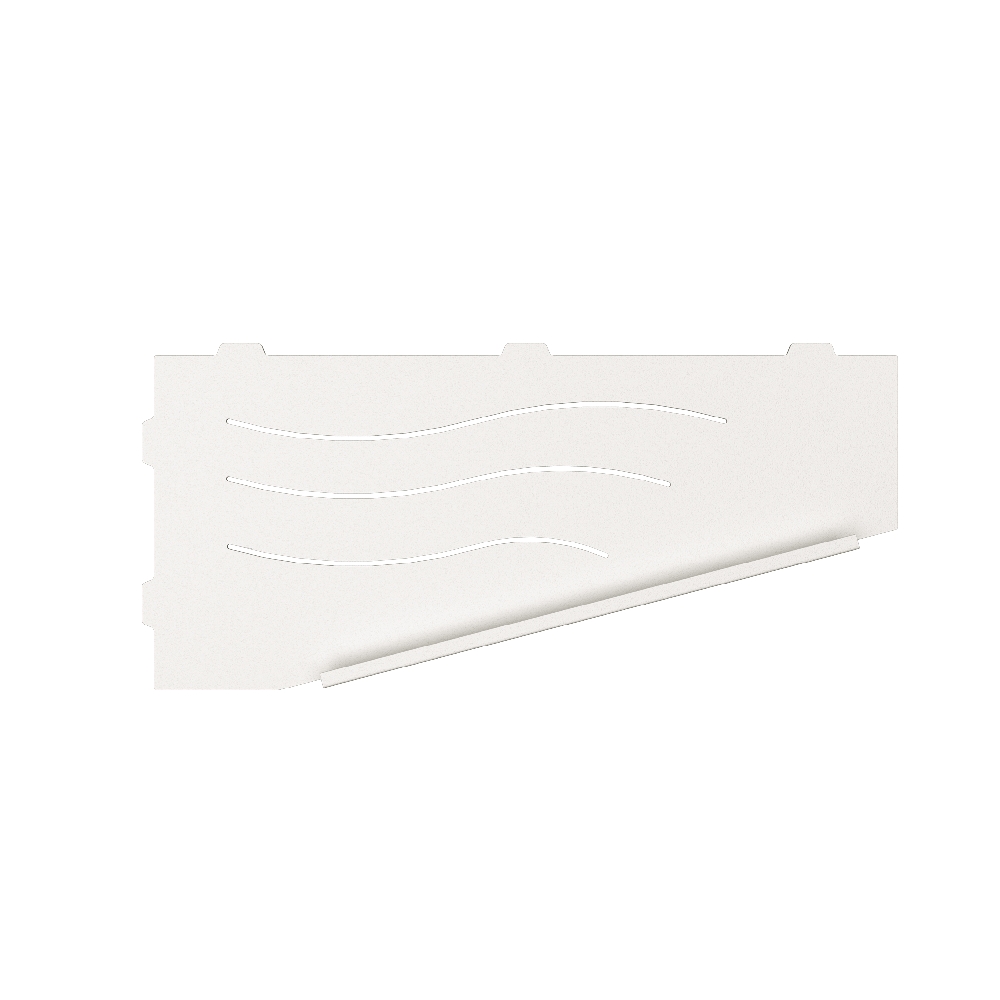 Полки для душевой зоны, разработанные специально для монтажа после завершения ремонта, т. е. укладки плитки. Легко устанавливаются в любые угловые зоны в помещении, для этого прорезается шов между плитками, далее полочка вклеивается между плиткой на любой бытовой герметик.