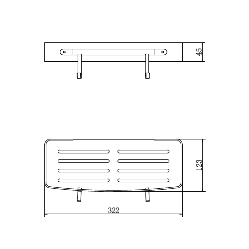 полочка настенная с 2 подвижными крючками, L=322 мм, Н=45 мм, W=123 мм