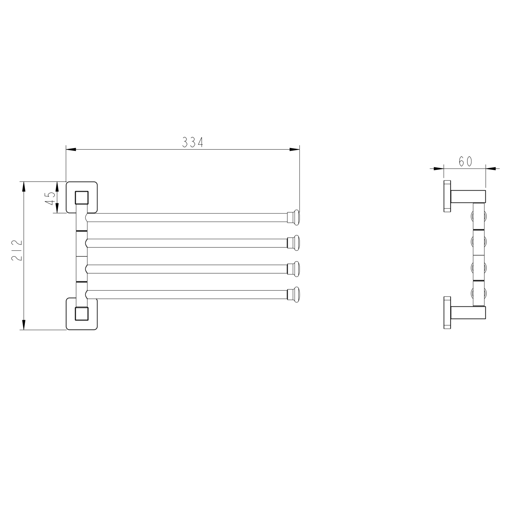 держатель для полотенец 4-х реечный поворотный настенного монтажа, ШВГ 334х212х60 мм