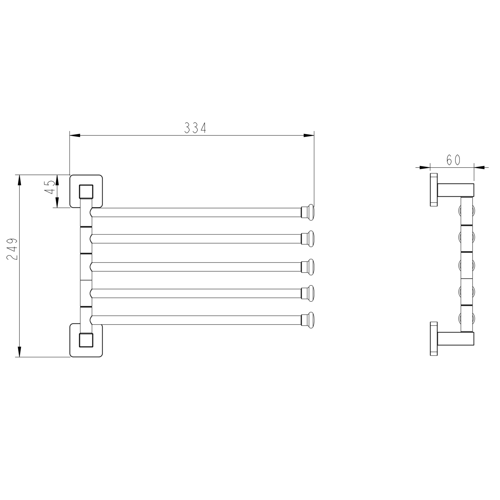 держатель для полотенец 5-и реечный поворотный настенного монтажа, ШВГ 334х249х60 мм