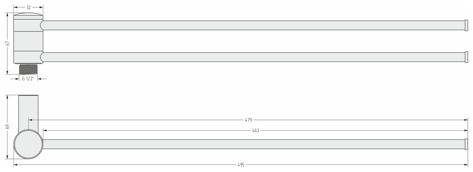 Полотенцедержатель Сунержа 360 для ДР/L 500х2 матовый белый (30-2003-0500)