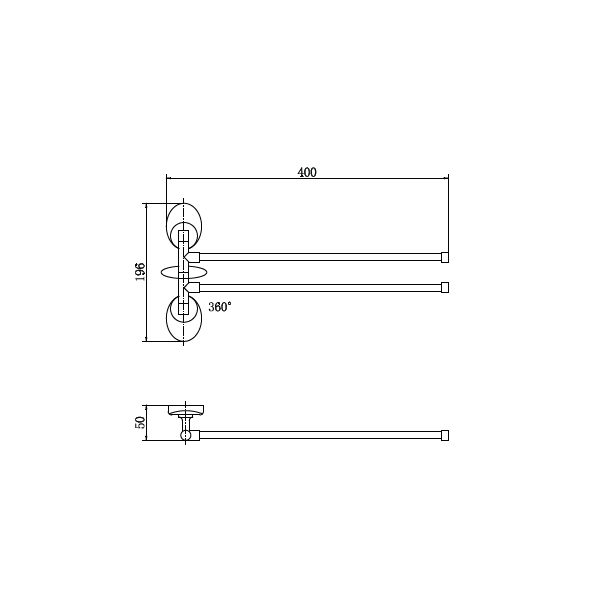 держатель для полотенец реечный поворотный 2 рейки настенного монтажа, H=196 мм, L=320 мм
