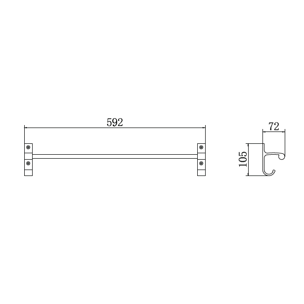 держатель для полотенец одинарный с двумя стационарными крючками настенного монтажа, L=592 мм