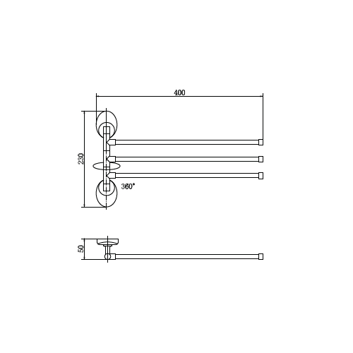 держатель для полотенец реечный поворотный 3 рейки настенного монтажа, H=230 мм, L=320 мм