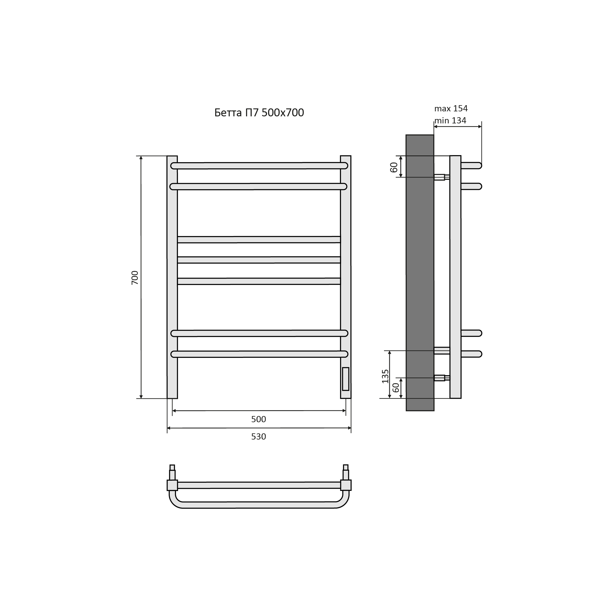 Полотенцесушитель электрический Aquatek Бетта 50х70 П7 черный муар R (AQ EL KRC0770BL)