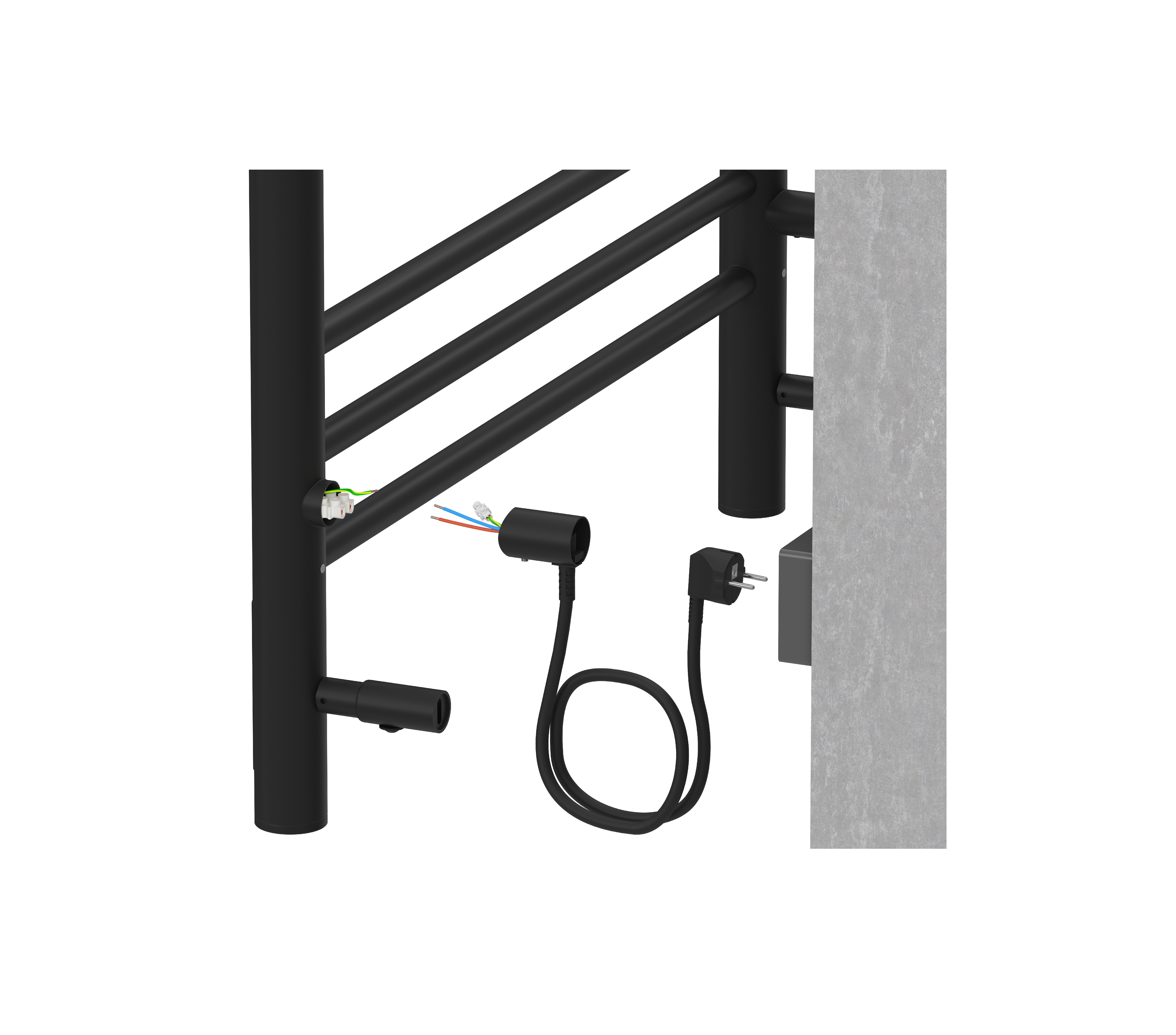Комплектация: полотенцесушитель, съемная кабель-вилка (длина 1,2м, втулки-переходники для подключения 2 шт, крепления у стене 4шт, шестигранный ключ 1 шт