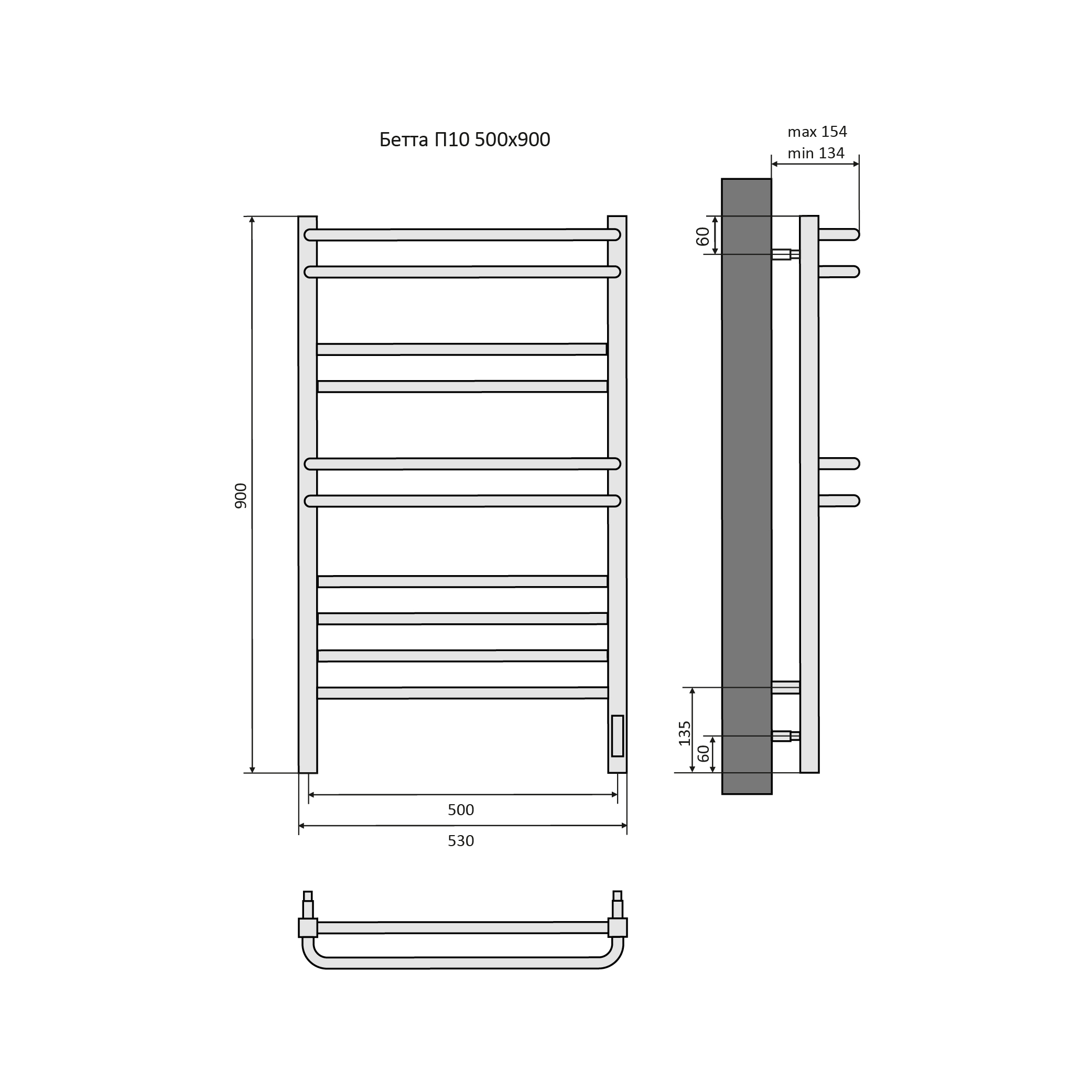 Полотенцесушитель электрический Aquatek (Акватек) Бетта П10 500х900 мм, черный муар, подключение скрытое к сети электропитания / электропровод с вилкой, с терморегулятором и таймером quick touch, нержавеющая сталь AISI 201, гарантия 5 лет