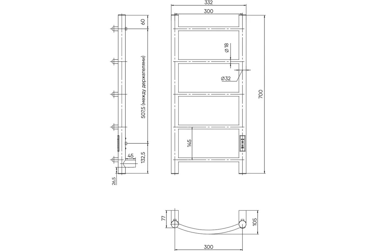 Комплектация: Полотенцесушитель электрический - 1 шт, паспорт изделия - 1 шт, комплект для монтажа - 1 шт, держатель телескопический - 4 шт.