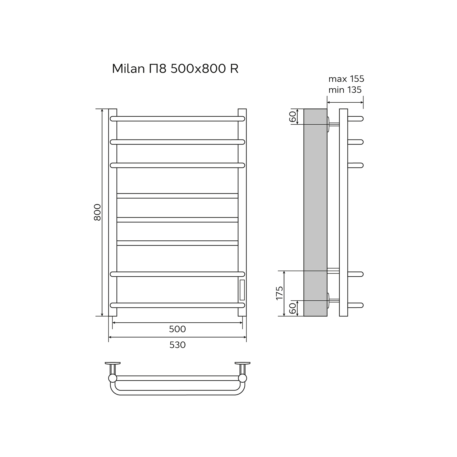 Полотенцесушитель электрический Azario Milan 500x800 белый