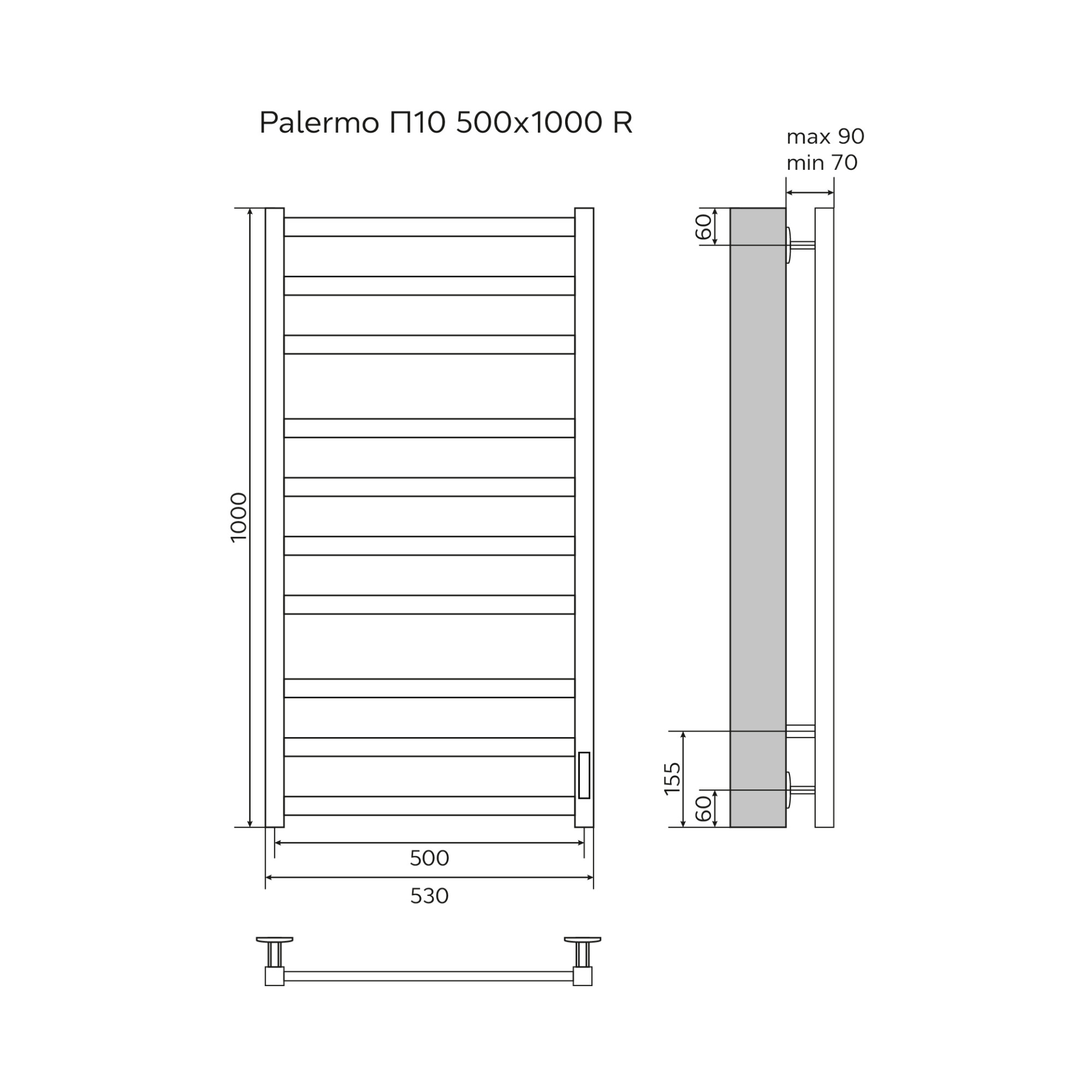 Полотенцесушитель электрический Azario Palermo 500x1000 белый