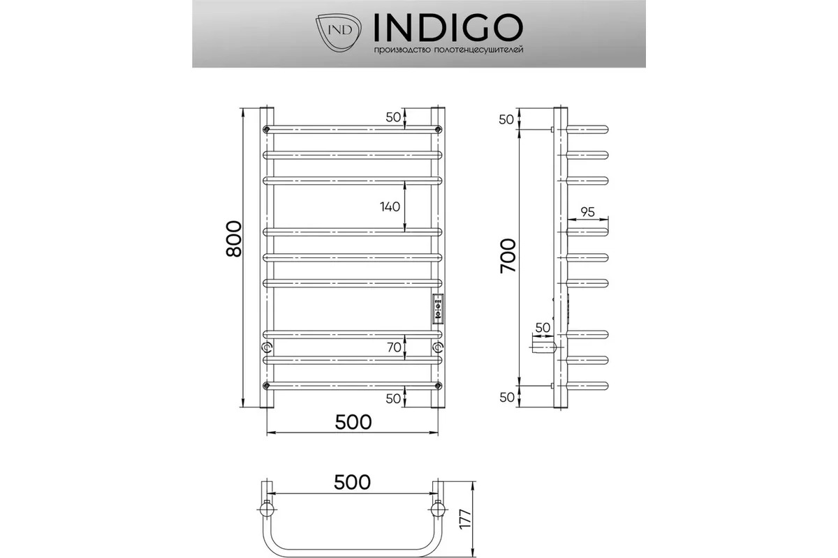 Полотенцесушитель электрический Indigo Brace Lux 800x500 таймер, унив.подкл.RxL, Полиров. (LCBLE80-50Rt)