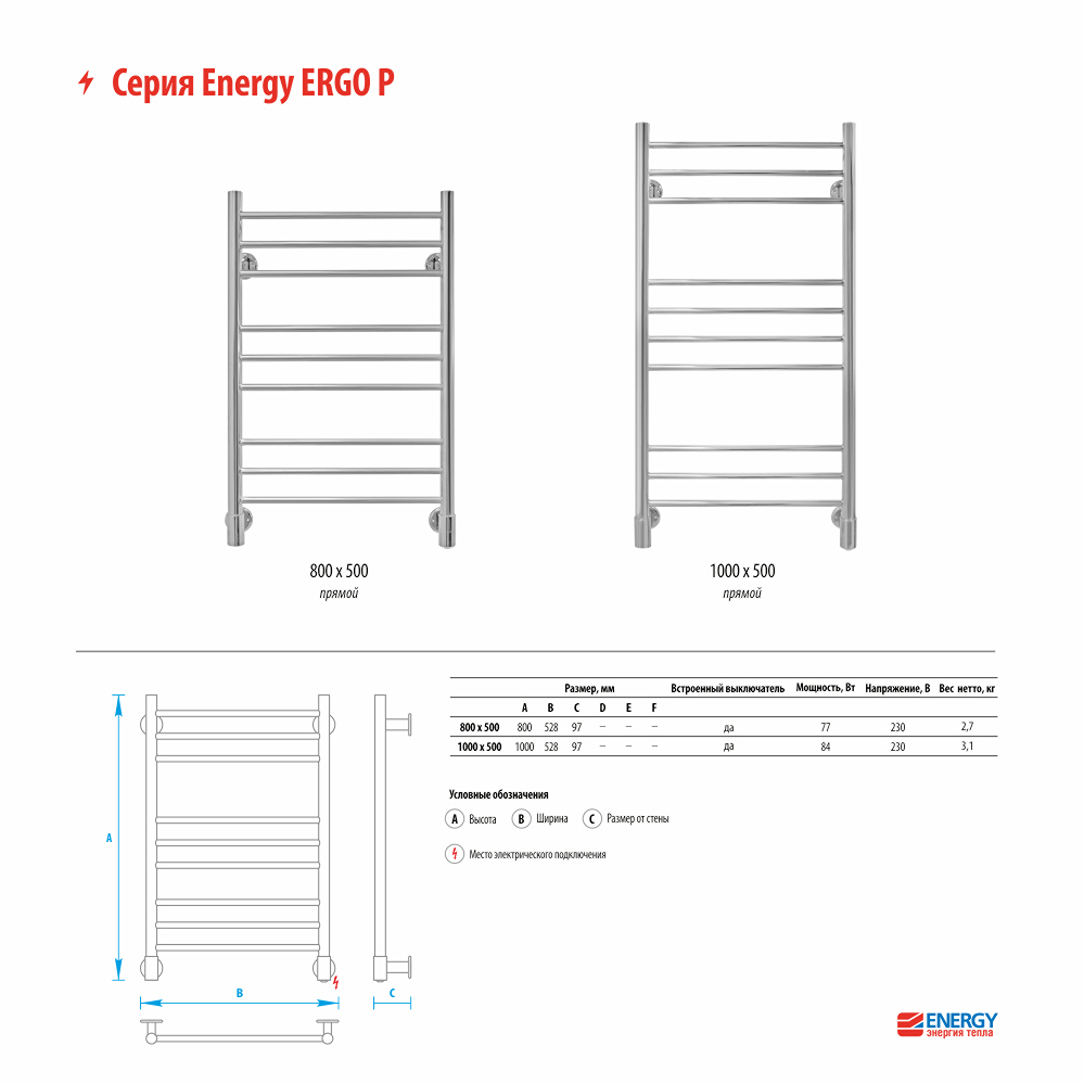 Полотенцесушитель электрический Energy Ergo P2 1000х500 белый матовый