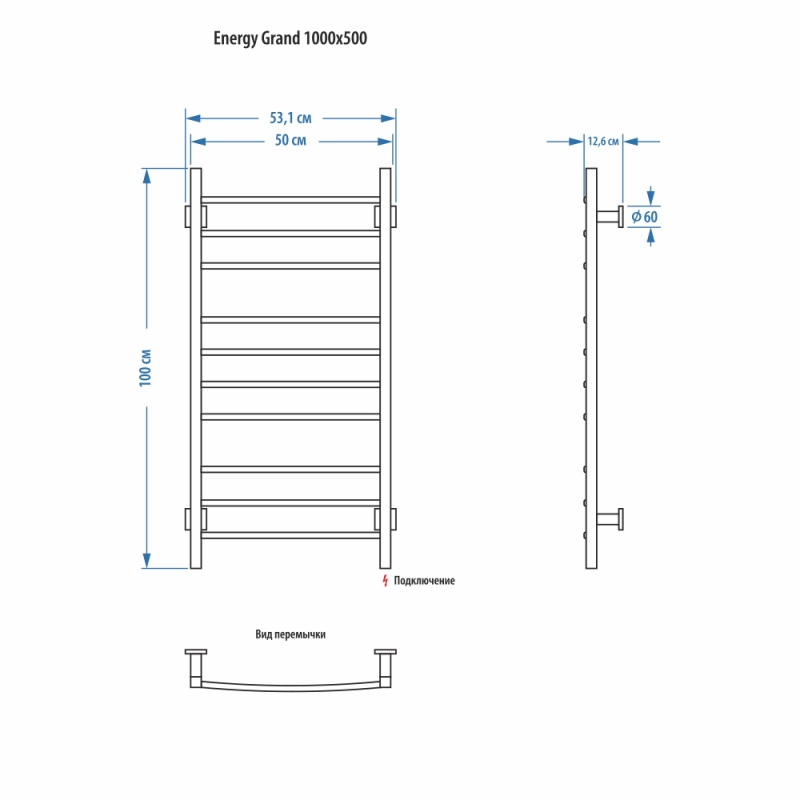 Полотенцесушитель электрический Energy Grand 1000х500 черный матовый