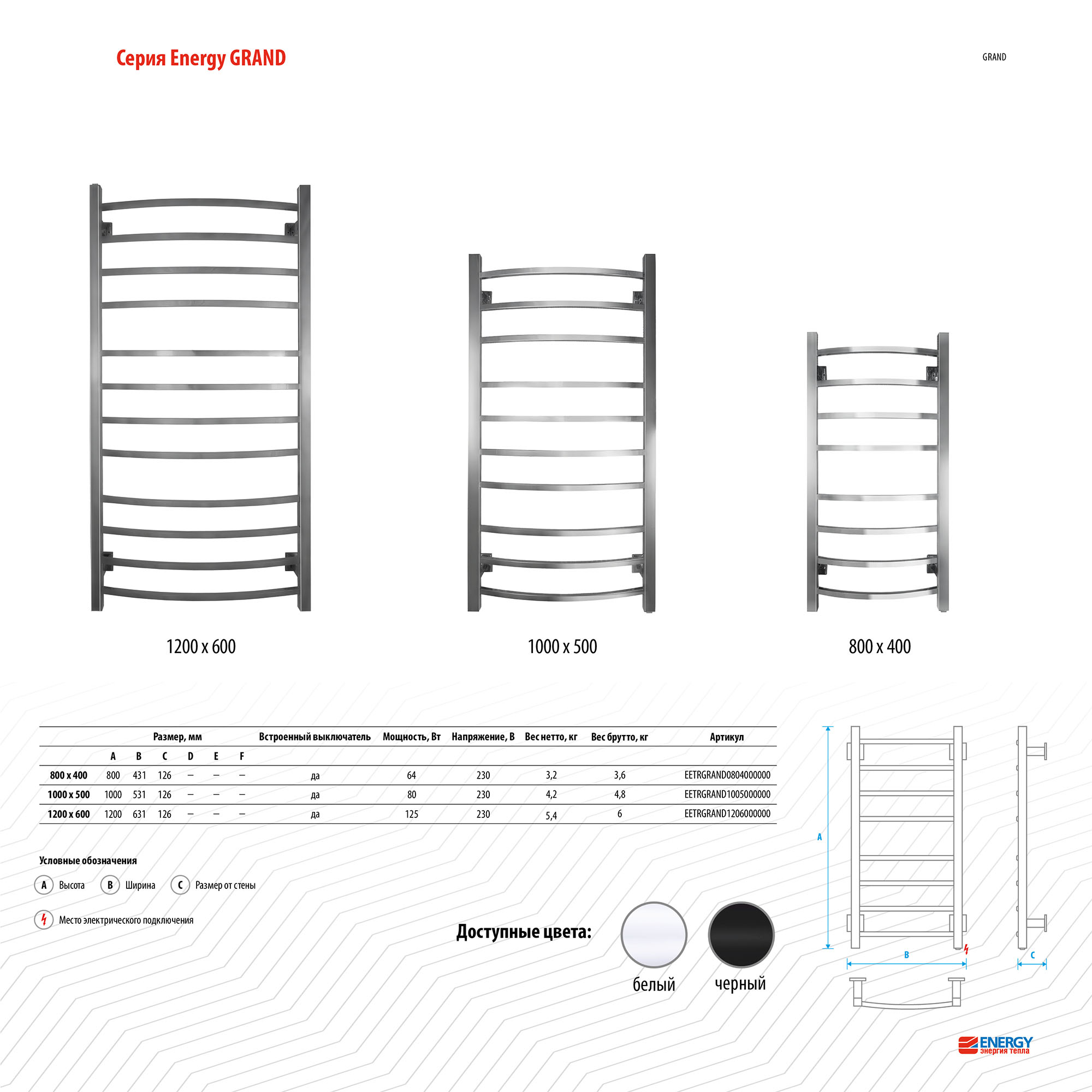 Полотенцесушитель электрический Energy Grand 1200х600 черный матовый