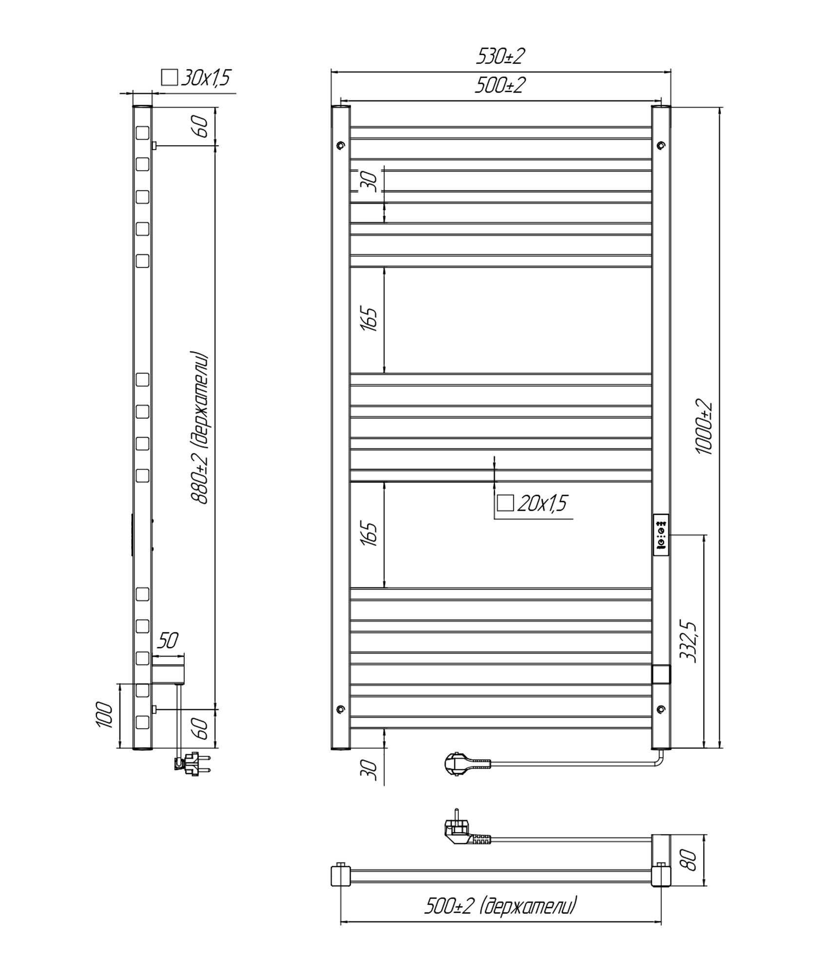 Полотенцесушитель электрический INDIGO Attic 1000х500 (ВхШ).