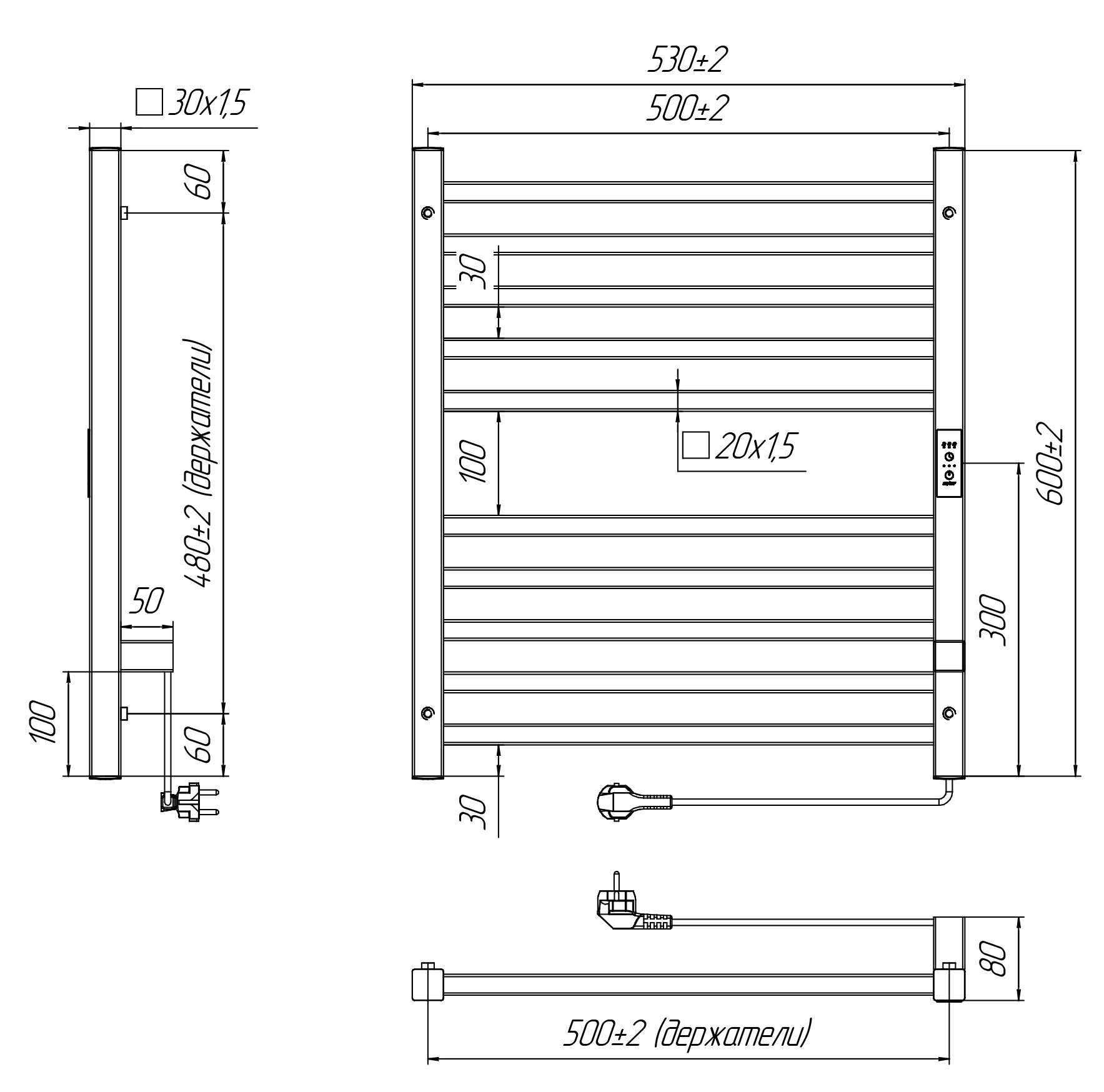 Полотенцесушитель относится к энергоэффективным изделиям, потребляемая мощность в данном размере 80 Вт.
