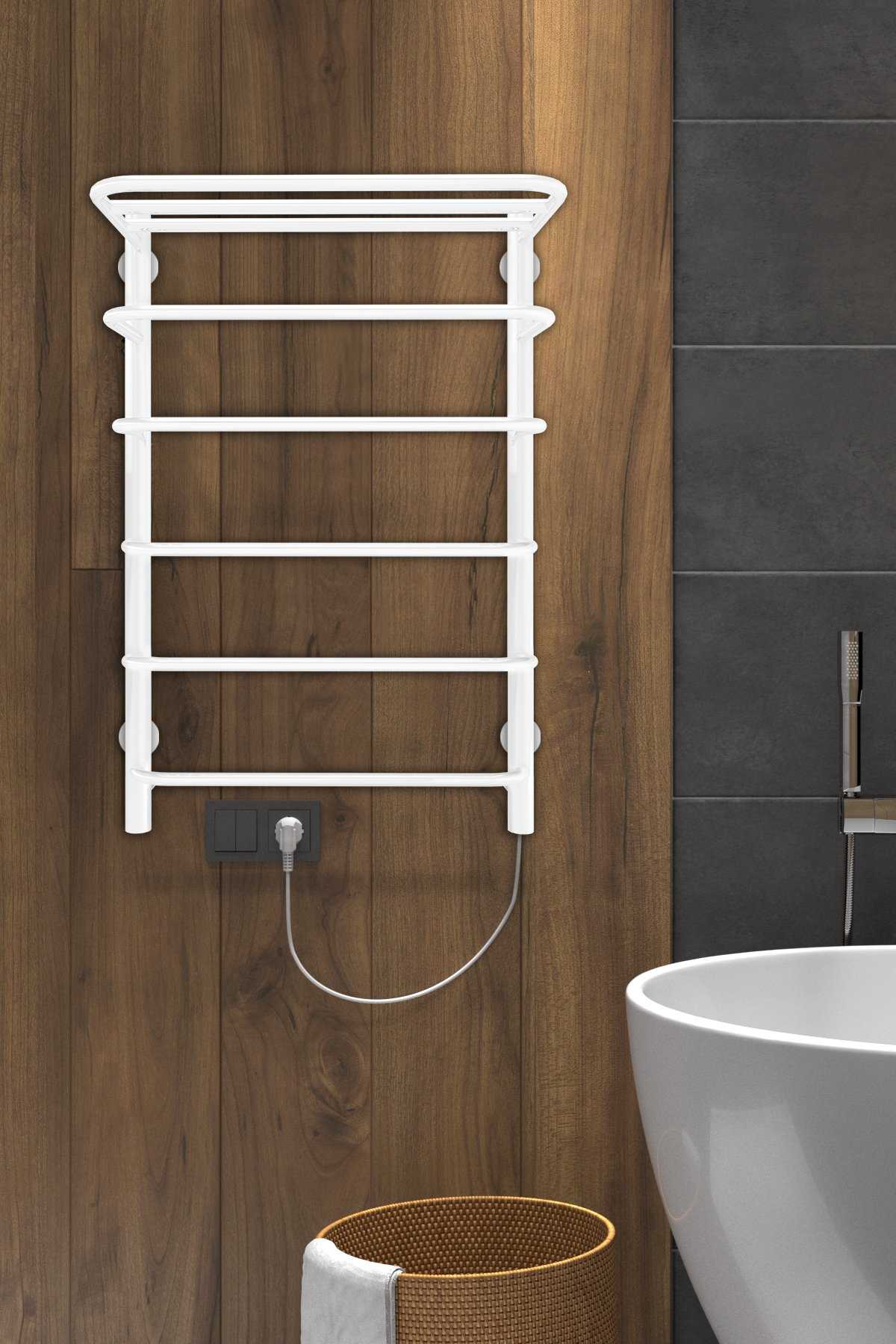 Полотенцесушитель электрический INDIGO Hit 525*800 белый матовый, с полочкой (LHE80-50WMR)