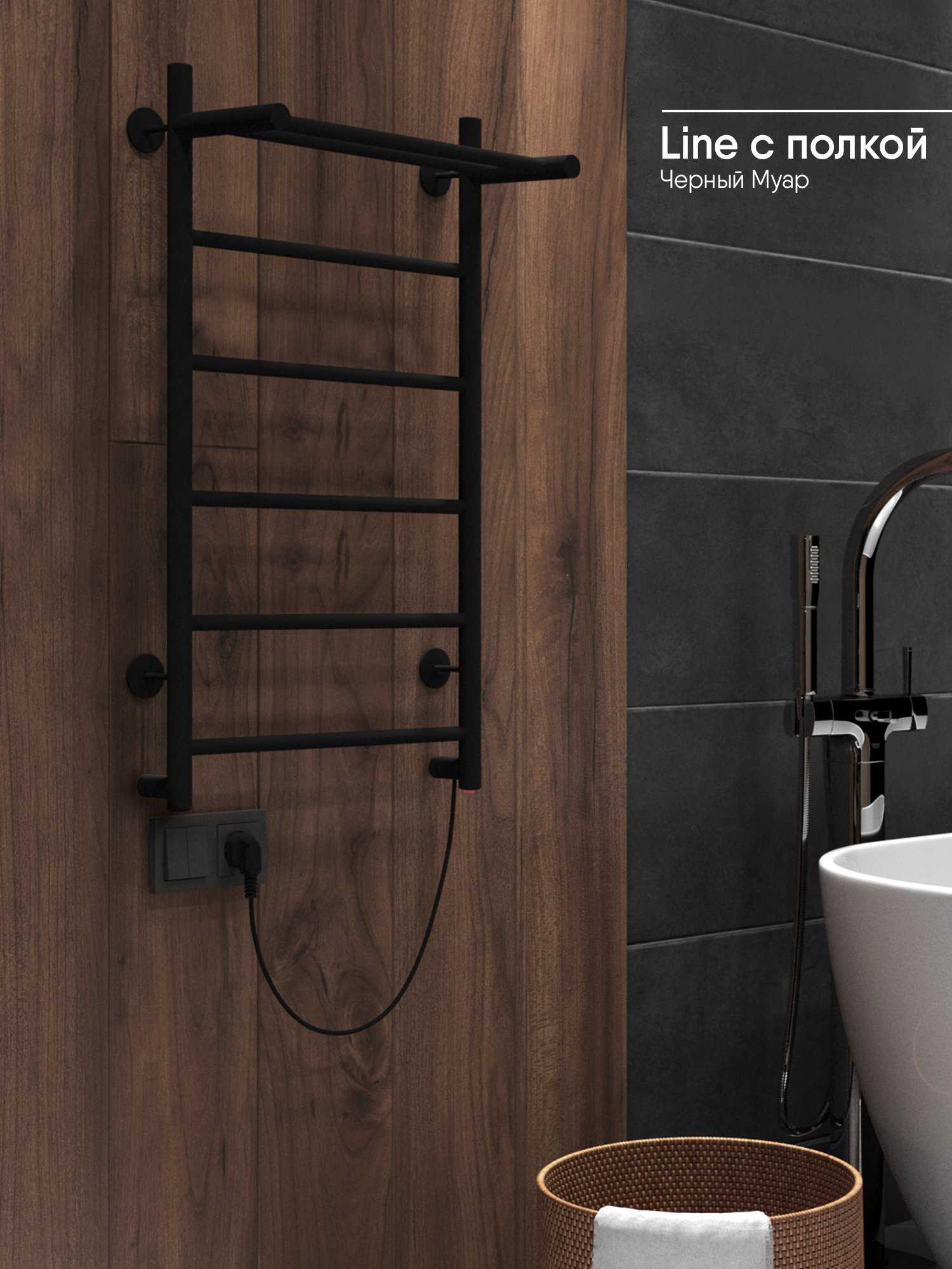 Полотенцесушитель электрический INDIGO LINE с полкой 525*800 черный муар, с полочкой (LСLE80-50BRPR)