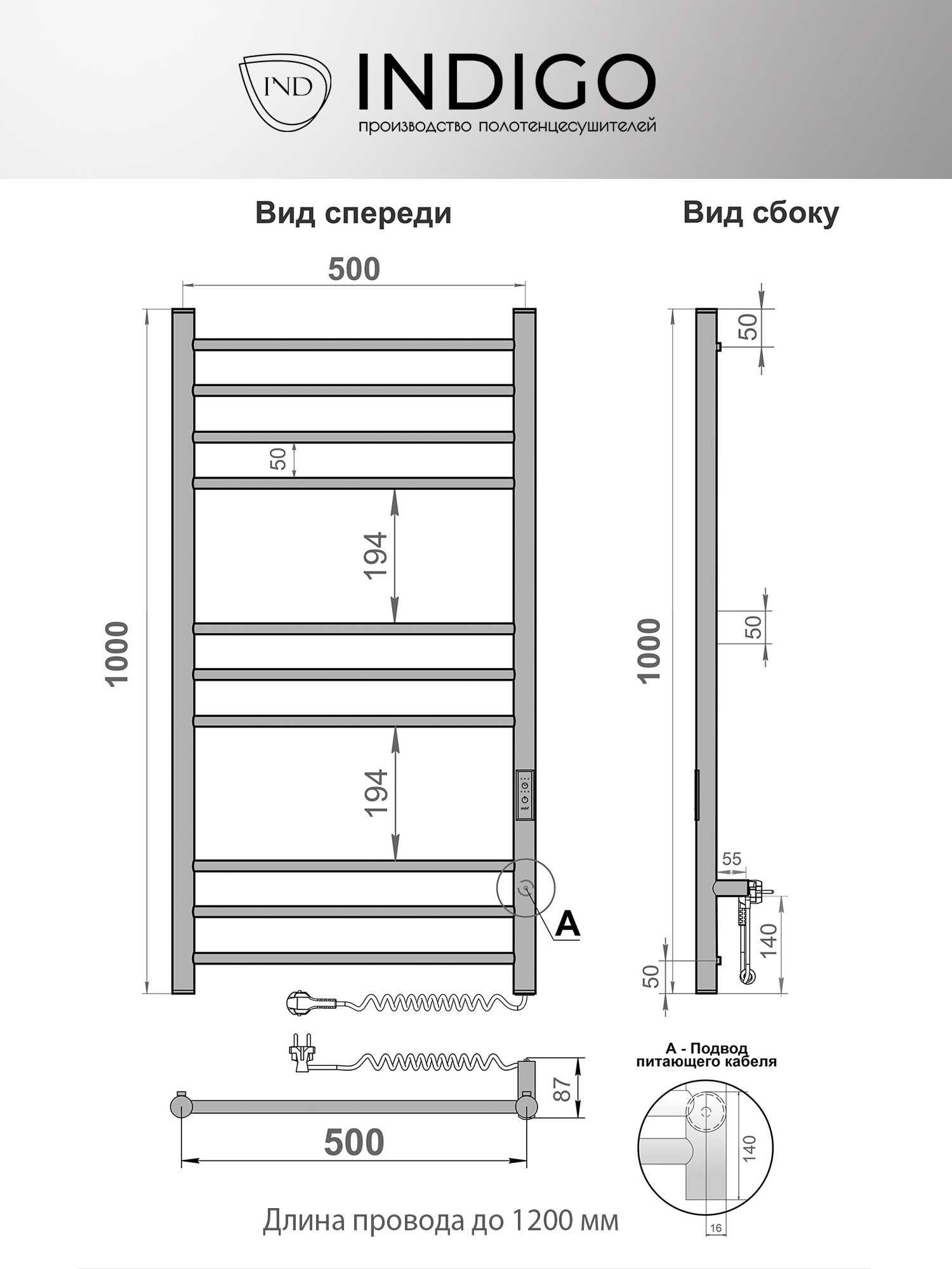 Полотенцесушитель электрический INDIGO Trinity 1000х500 (ВхШ).