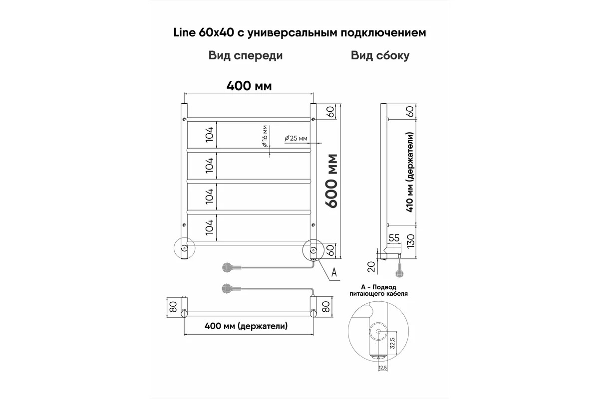 Полотенцесушитель электрический Indigo Line 600x400 унив.подкл.RxL, Полиров. (LCLE60-40R)