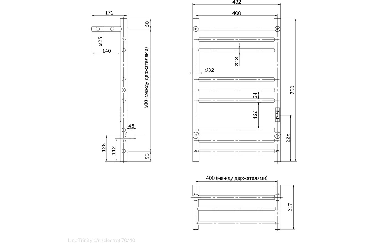 Полотенцесушитель электрический Indigo Line Trinity 700x400 таймер, унив.подкл.RxL, Полиров., сxп (LСLTE70-40PRt)