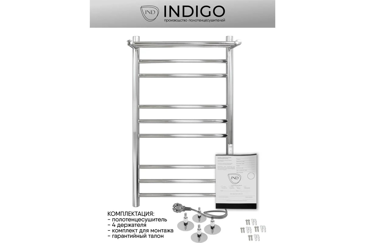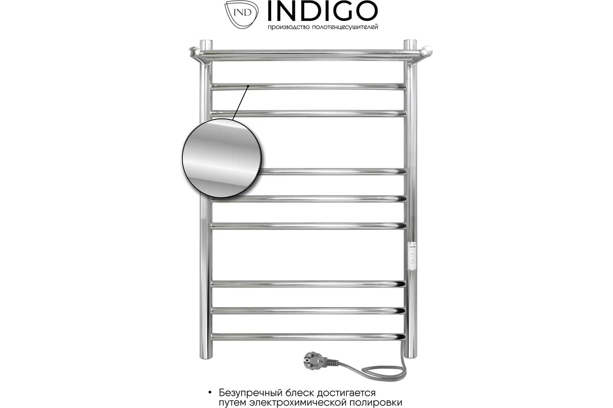 Полотенцесушитель электрический INDIGO Trinity с полкой в размере 800х500 (ВхШ) выбирают за его технологичность и универсальность. Модель имеет терморегулятор нагрева, у которого три режима: 40, 45, 50 градусов и таймер на отключение через 2, 4, 6 часов. Универсальность изделия предусматривает подключение через прямой провод, который переставляется на нужную вам сторону или скрытое подключение без покупки дополнительного переходника. Длина прямого провода 1,1 метр.