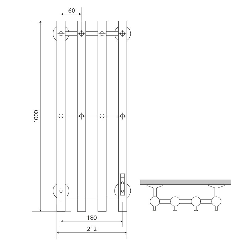 Полотенцесушитель электрический Melodia Blues Electro 1000х210 П4 8 крючков хром (MTRBLE10021)