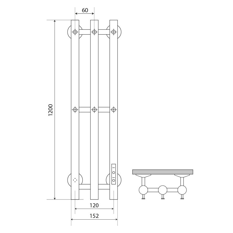 Полотенцесушитель электрический Melodia Blues Electro 1200х150 П3 6 крючков хром (MTRBLE12015)