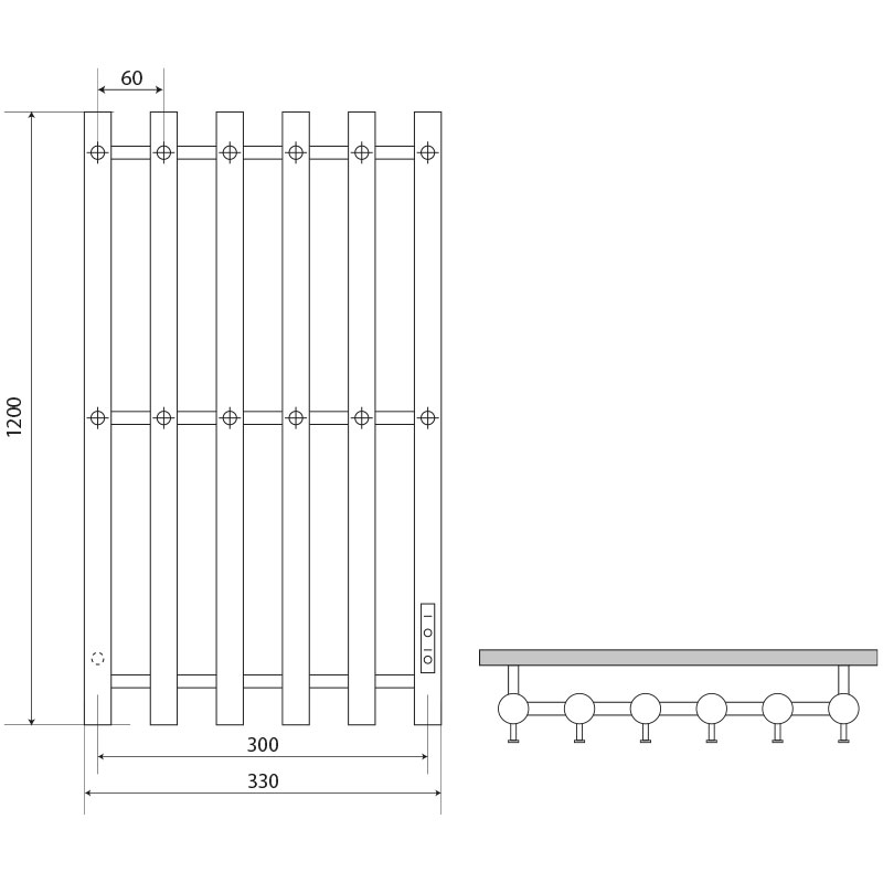 Полотенцесушитель электрический Melodia Blues Electro Ferrum 1200х330 П6 12 крючков черный (MTRBEF12033bk)