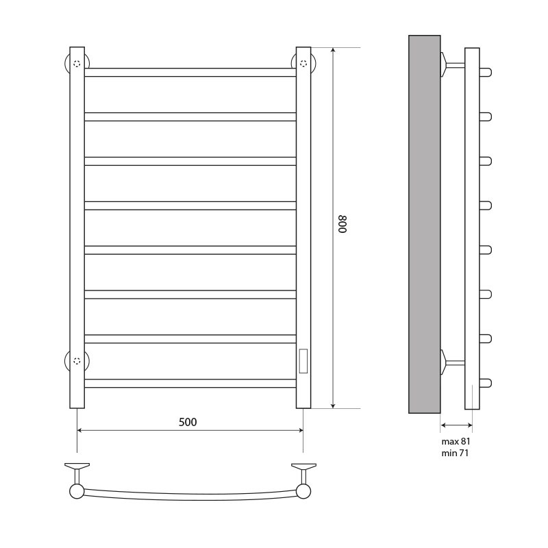 Полотенцесушитель электрический Melodia Country Electro Ferrum 500х800 П8_4x4 cухой ТЭН 115Вт встр.диммер черный (MTRСEF5080bk)
