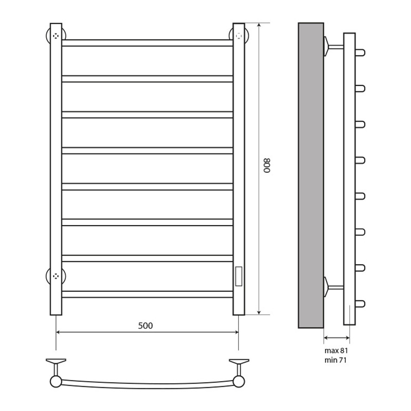 Полотенцесушитель электрический Melodia Country Electro Ferrum 500х800 П8_4x4 cухой ТЭН 115Вт встр.диммер графит (MTRСEF5080gt)