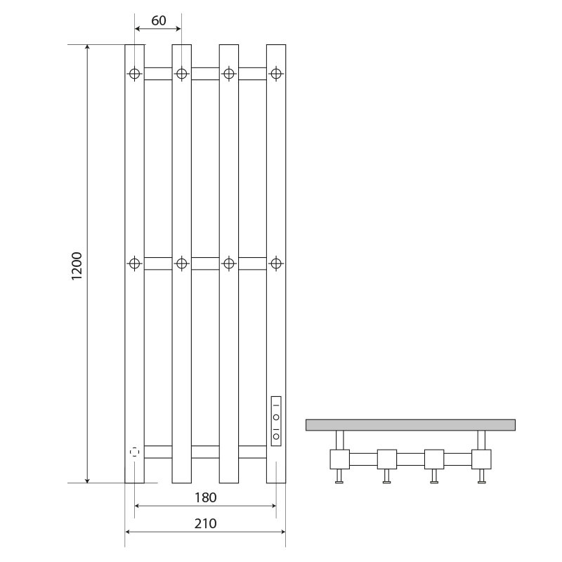 Полотенцесушитель электрический Melodia Etude Electro 1200х210 П4 8 крючков хром (MTREEE12021)