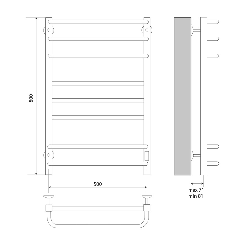 Полотенцесушитель электрический Melodia Fusion Square Ferrum 500х800 П8_3x3x2 cух.ТЭН 135Вт встр.диммер гарфит (MTRFSF580gt)