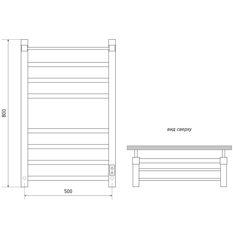Полотенцесушитель электрический Melodia Moderno Shelf Ferrum 500х800 П8_3*4 cухой ТЭН 142Вт встр.диммер графит (MTRMSF5080gt)