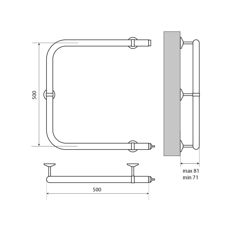 Полотенцесушитель электрический Melodia Moon Electro 500x500 85Вт встроенный диммер, хром, без полочки