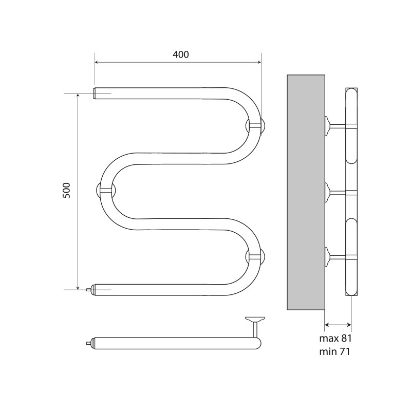 Полотенцесушитель электрический Melodia Simple Electro 500x400 75Вт встроенный диммер, хром, без полочки