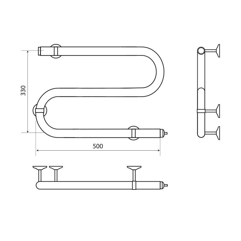 Полотенцесушитель электрический Melodia Wave Electro 330x500 70Вт встроенный диммер, хром, без полочки