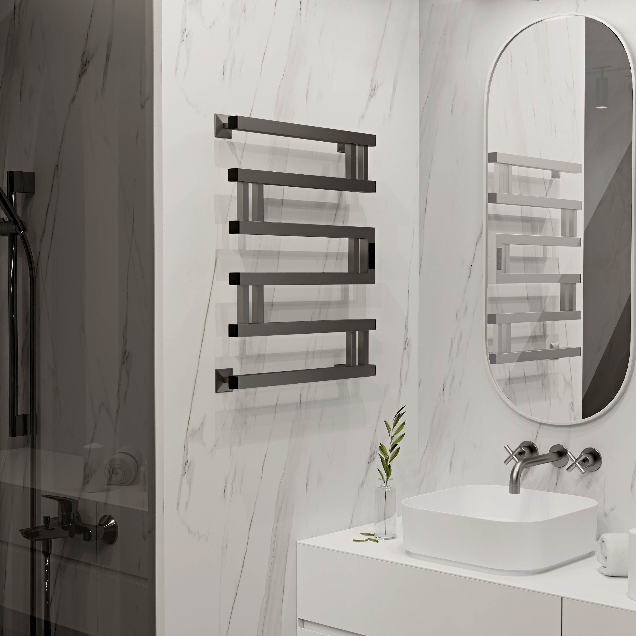 Полотенцесушитель электрический Indigo Muza 600x500 таймер, скрыт.провод справа, Gun Metal (DGM60-50GNSRt)