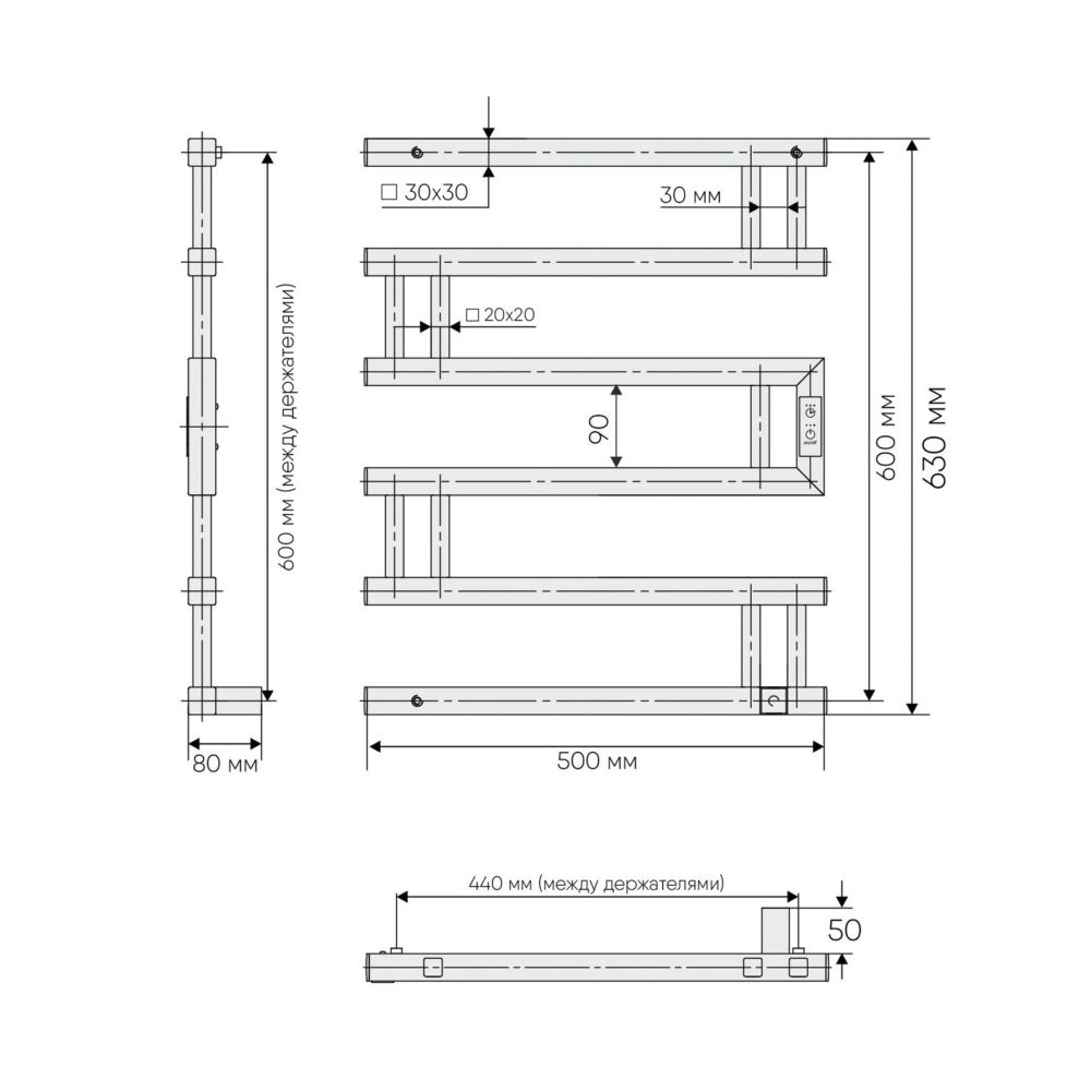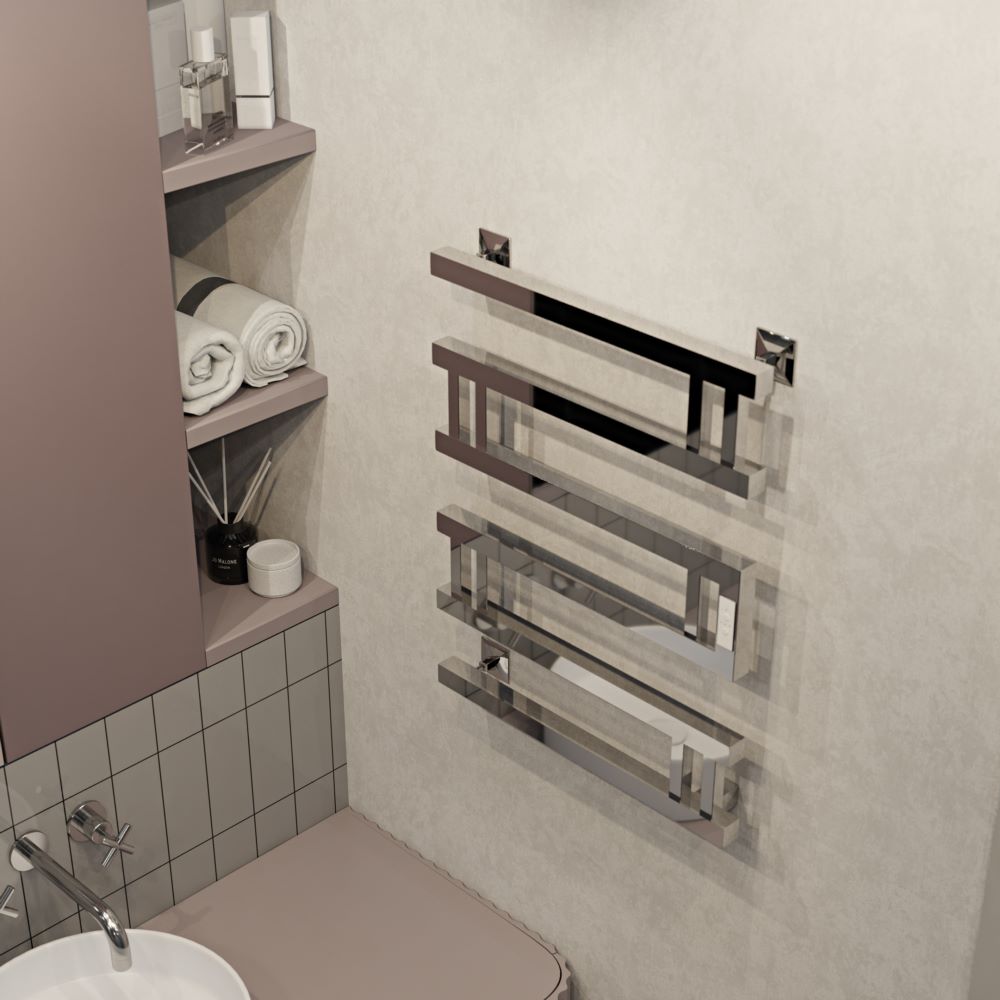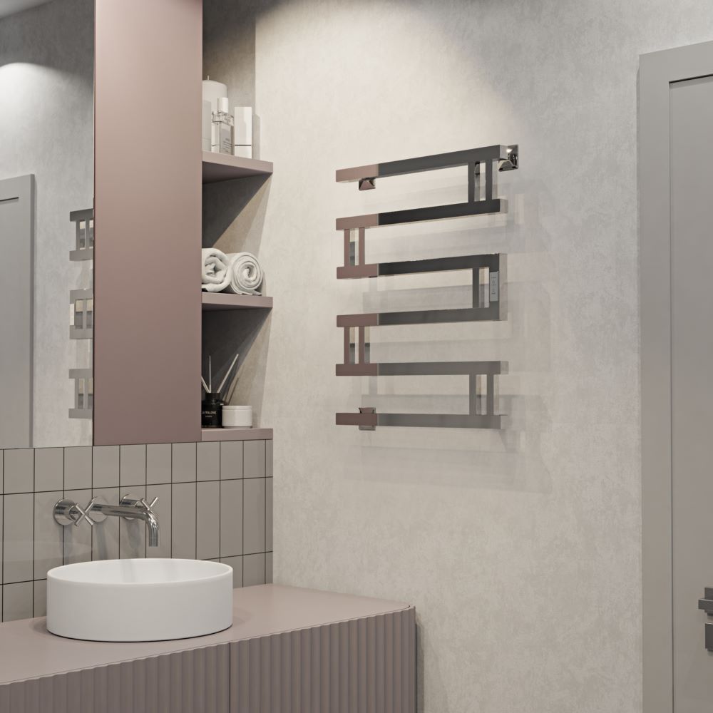 Полотенцесушитель электрический Indigo Muza 600x500 таймер, скрыт.провод справа, Полиров. (DGM60-50Rt)