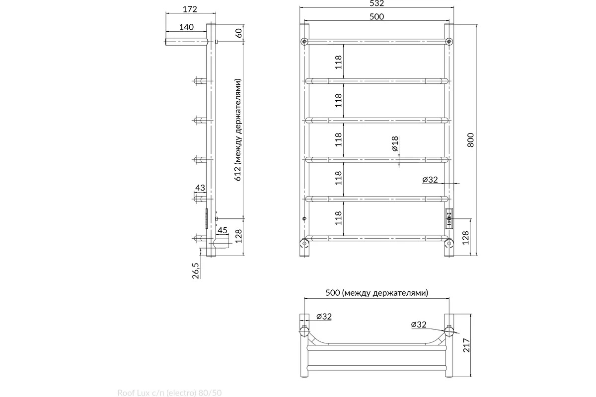 Полотенцесушитель электрический Indigo Roof Lux 800x500 таймер, унив.подкл.RxL, Полиров., сxп (LCRLE80-50PRt)