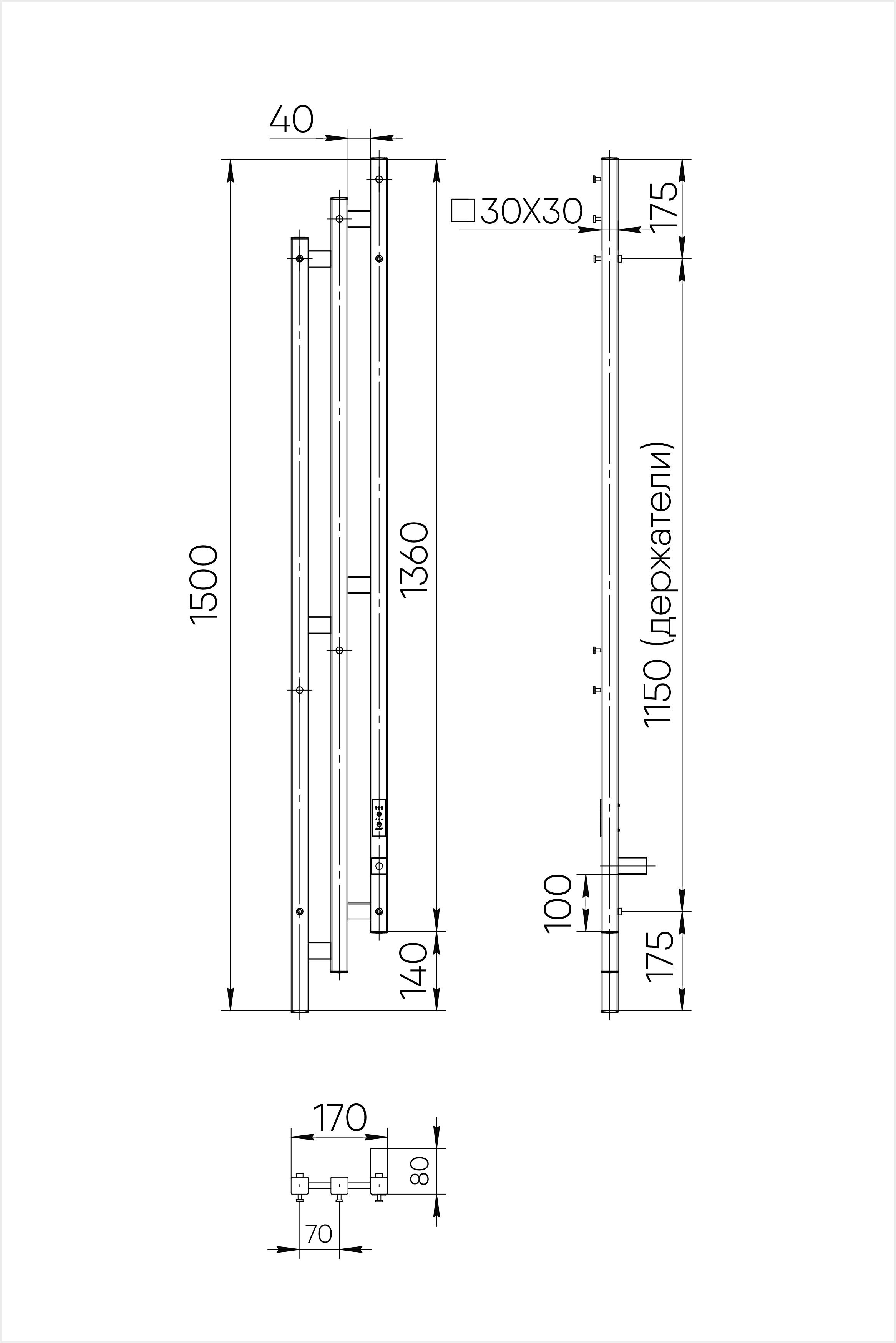 Полотенцесушитель электрический Indigo Sky PRO 1500x170 таймер, скрыт.провод справа, Белый матовый (LSKPRE150-17WMRt)