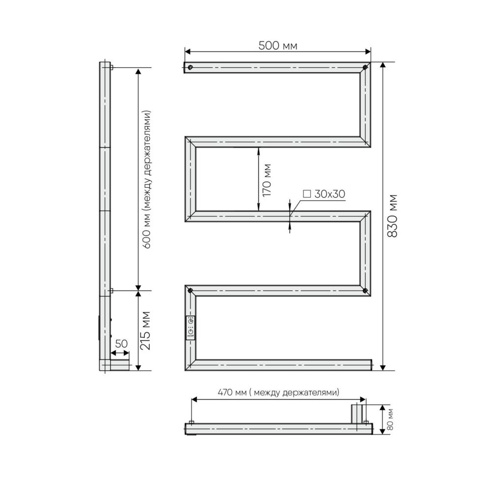 Полотенцесушитель электрический Sparta 800x500 таймер, скрыт.провод справа, Полиров. ( DGS80-50Rt)