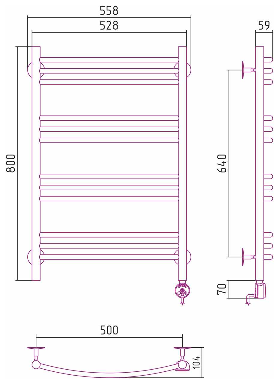 Полотенцесушитель электрический Стилье Формат 10 ТП 800x500 (3+3+3+3) Г16, хром (00510-8050)