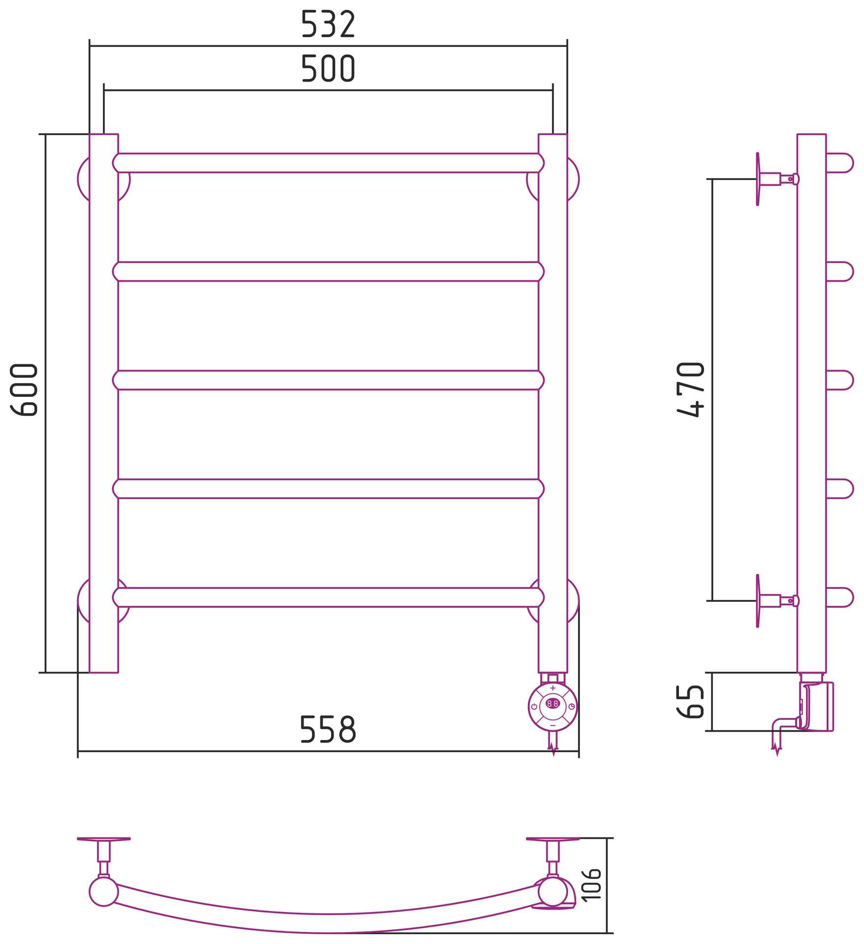 Полотенцесушитель электрический Стилье Формат 12 600x500 правый, хром (00512-6050)